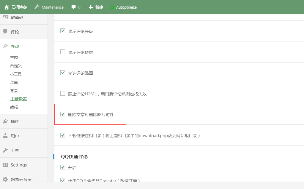 当你在删除文章时先执行函数内容,删除特色图片以及图片附件,但是如果在使用?action delete_post?而不是?before_delete_post?将导致删除文章后因媒体附件与文章关联已取消而无法正确删除。知更鸟主题已集成,直接前往主题设置-基本设置页面修改即可。如下图本文作者为 许都,未经授权,禁止转载。