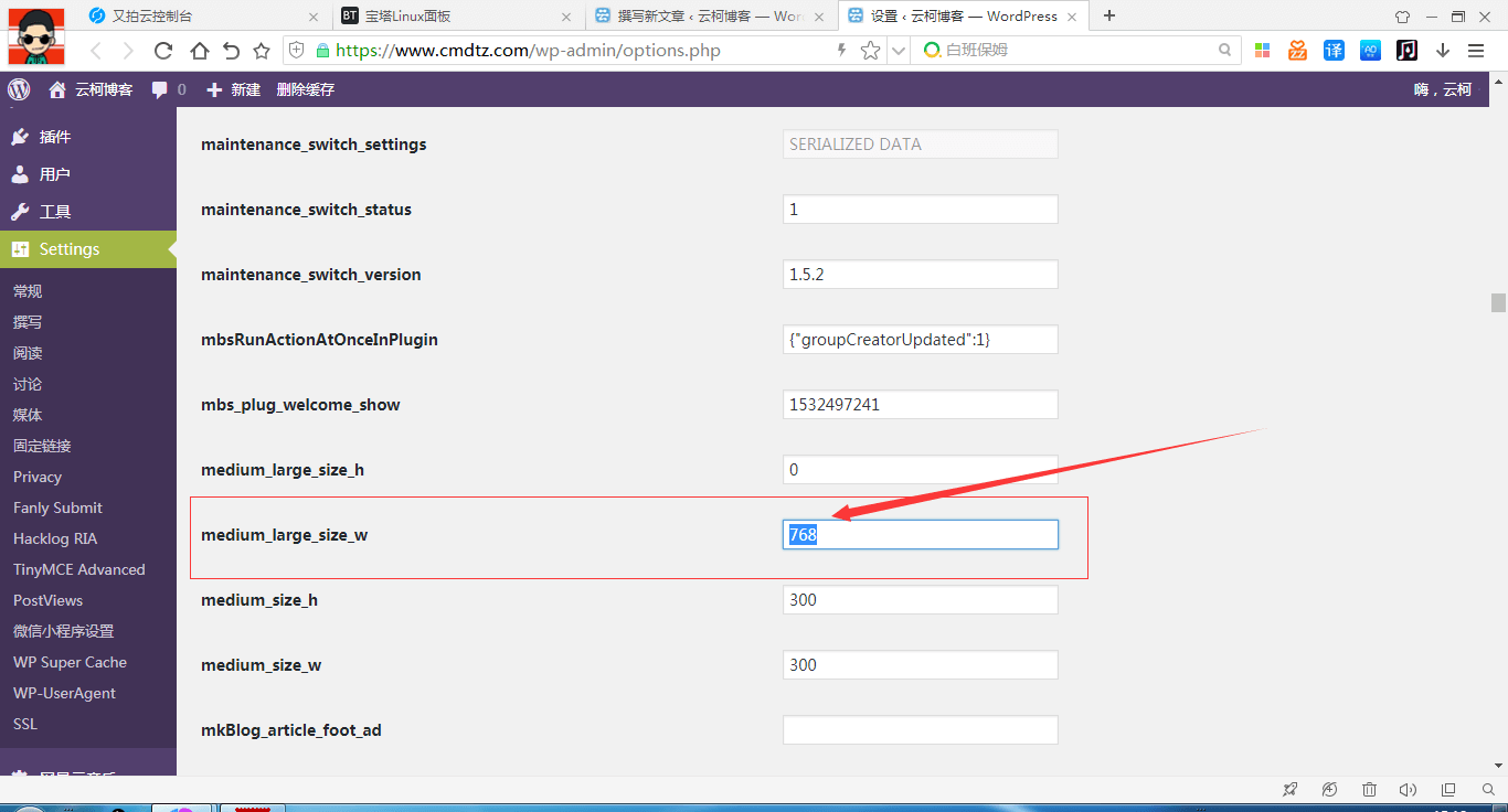 medium_large_size_w,找到如下位置将768修改为0保存设置即可: